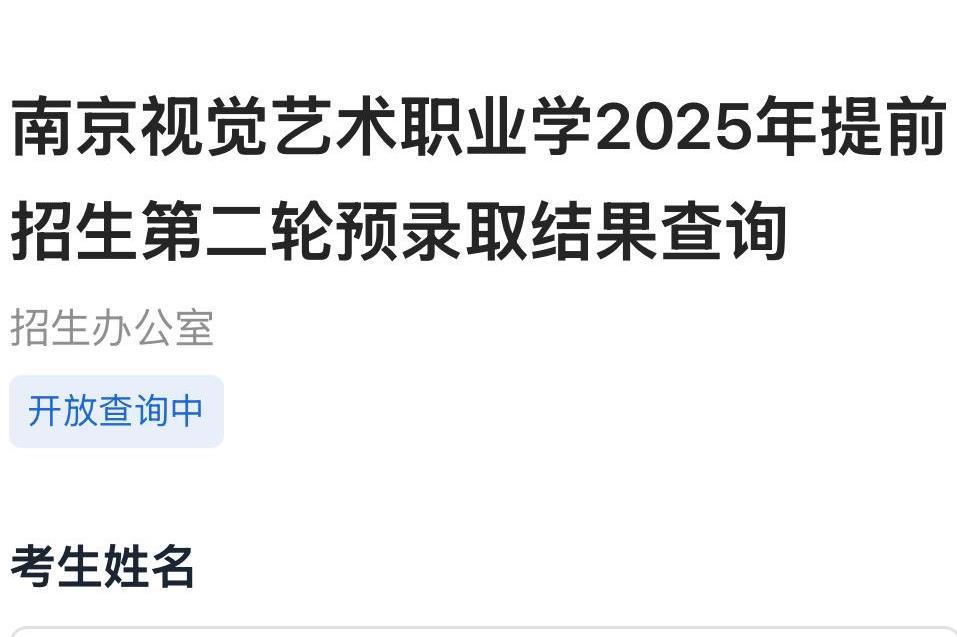 南京视觉艺术职业学院2025年提前招生第二轮预录取查询